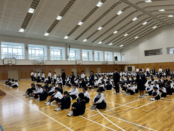 1学期の終業式が行われました。まず、1学期に輝かしい成績を収めた生徒の表彰が行われました。各部活動の大会やコンクールで、たくさんの生徒が賞状をもらうことができました。終業式では、校長先生から「レジリエンス」の重要性についてお話があり、生徒たちは、真剣な表情で聞いていました。丸盛タイムでは、生徒会主催のクイズが行われ、いろいろな先生にまつわるクイズや、生徒会をもっとよく知ることができるクイズなどを楽しみました。